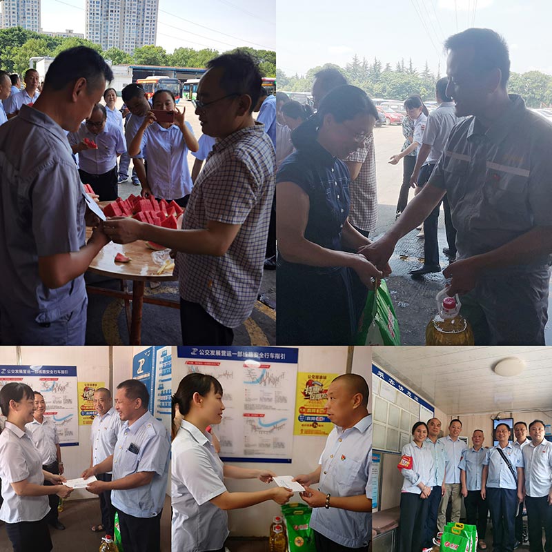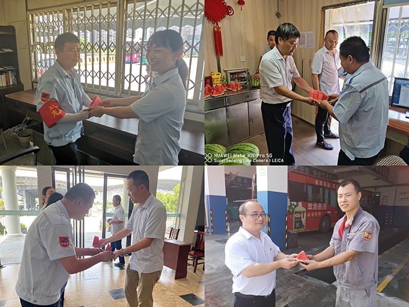 驕陽似火,酷暑難當。為切實做好常態(tài)化疫情防控下職工安全生產(chǎn)和夏季防暑降溫工作,確保一線職工平安度夏,全力以赴地為市民提供安全、便捷、舒適的出行服務(wù)。7月15日,公交發(fā)展黨總支開展以"炎炎夏日送清涼、優(yōu)質(zhì)服務(wù)戰(zhàn)酷暑""三比三爭"勞動競賽系列主題活動?偣军h委副書記、總經(jīng)理譚劍平、副總經(jīng)理陳小玲、發(fā)展公司領(lǐng)導(dǎo)班子成員一同慰問,將西瓜、涼茶等防暑降溫物品發(fā)給一線職工,把清涼送到一線,把關(guān)懷送到職工心坎。